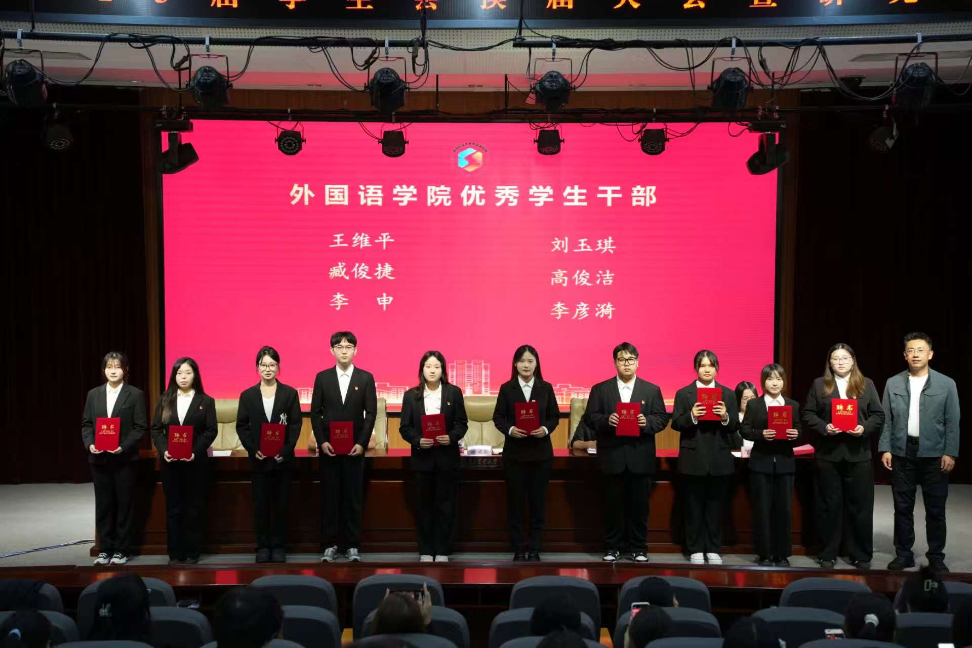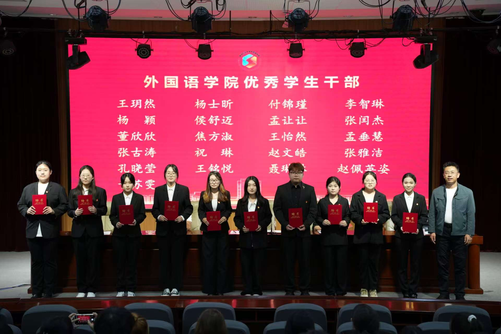 盛金玉为2024届学生会及研究生会骨干成员颁发荣誉证书。王洋洋为2024届学生会及研究生骨干成员颁发英国上市公司官网365学生工作突出贡献奖。