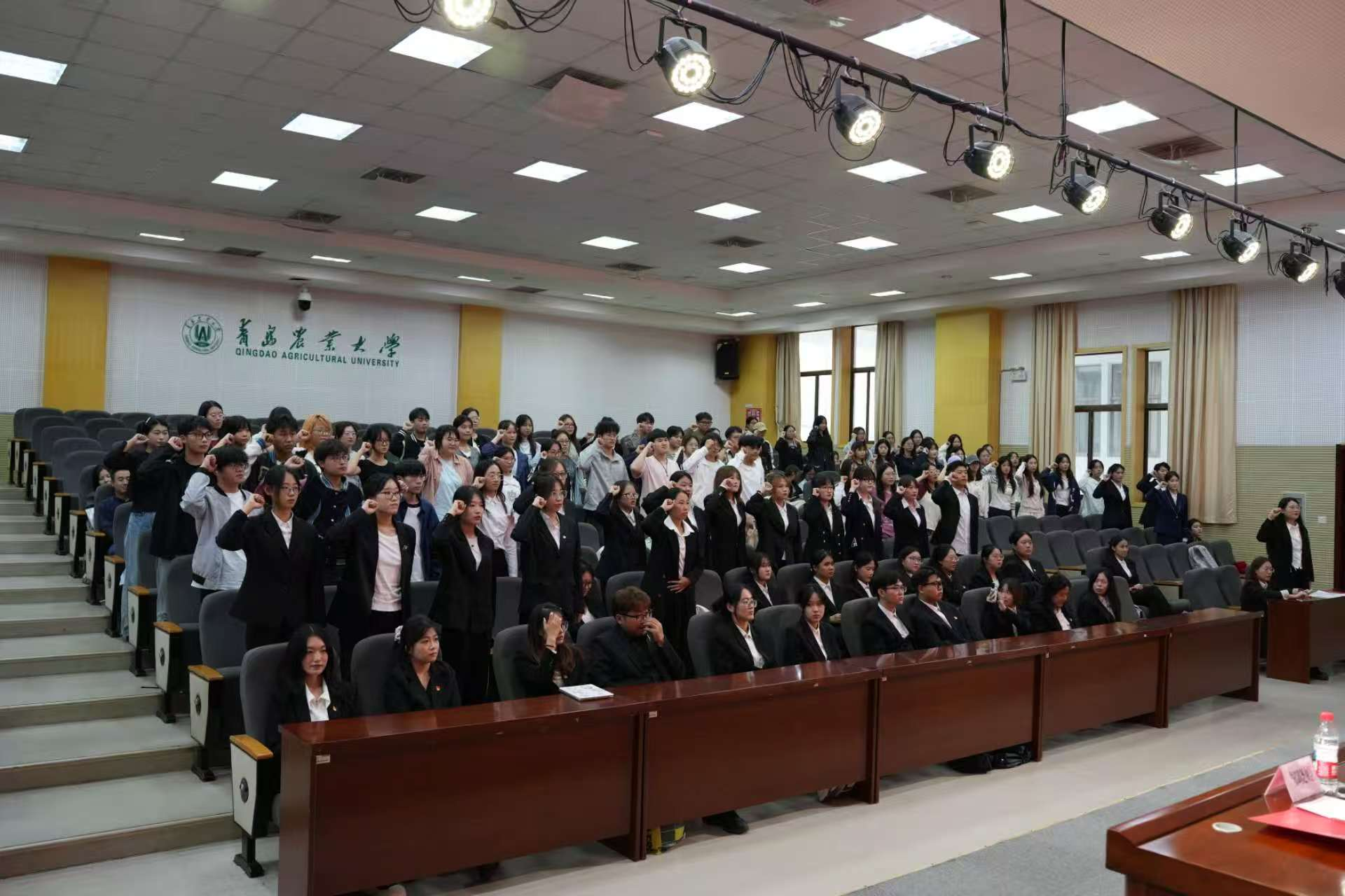 张溪芮带领2025届学生会全体成员进行宣誓。