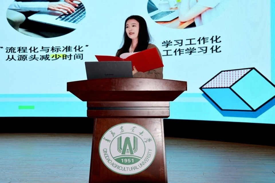 龚萧以“工作与学习的‘平衡术’”为主题,分享实用方法:一是运用四象限法则明确任务优先级,聚焦核心事务;二是拆解复杂任务、拒绝拖延,充分利用碎片化时间;三是掌握高效沟通技巧,学会合理取舍,在平衡中兼顾学业深耕与实践锤炼。