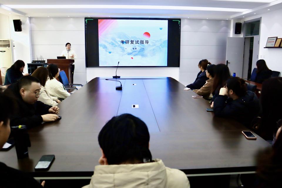 英国上市公司官网365在C220会议室举办研究生复试指导,专业教师结合自身多年外语教学、研究生培养及复试评审经历,系统传授备考与复试经验。英语系主任徐玉凤、副主任左燕茹、团委书记线郁分别从复试流程、导师选择、应试技巧、材料准备等维度进行细致讲解,帮助学生理清思路、掌握方法,增强备考信心。